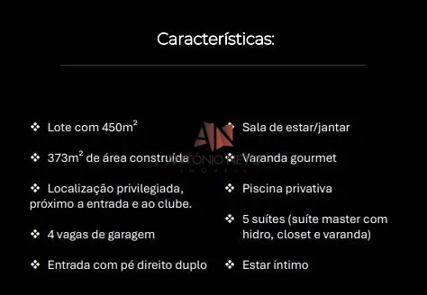 Casa Duplex de Alto Padrão no Alphaville Ceará 2 na Cidade Alpha Exclusividade, conforto e elegância em um dos condomínios mais desejados do Eusébio! Se você busca uma residência ampla, moderna e com acabamento de primeira, esta é a oportunidade ideal. Uma casa projetada para oferecer bem-estar, privacidade e lazer completo para toda a família. Detalhes do Imóvel: Área do lote: 450 m² Área construída: 373 m² 5 suítes, sendo 1 suíte master com espaço generoso Estar íntimo Sala ampla e integrada Cozinha funcional Varanda gourmet perfeita para receber amigos e familiares Piscina privativa 4 vagas de garagem Localização Privilegiada: Um dos empreendimentos mais completos e valorizados do Eusébio, com segurança, lazer completo e fácil acesso aos principais pontos da região. Se você deseja morar com qualidade, sofisticação e segurança, essa casa é o imóvel perfeito para sua família. Agende agora sua visita e conheça de perto cada detalhe!