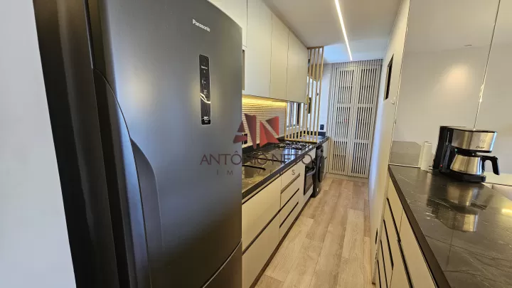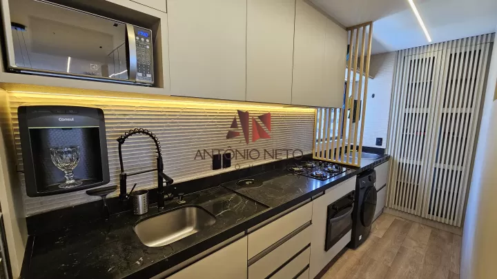 Totalmente reformado com piso todo em vinílico, bancadas em pedra preta, paines de madeira ripado, trazendo um cenário de luxo e sofisticação.