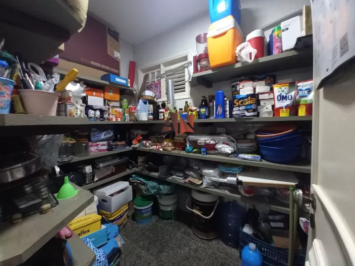 Ampla cozinha tradicional com armários e despensa,