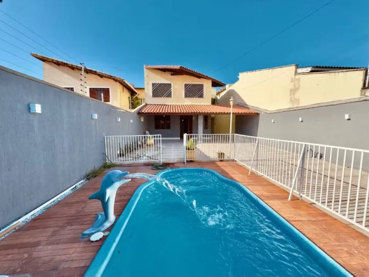 Casa Duplex à Venda no Bairro Sapiranga em Fortaleza/CE Linda casa duplex, ampla e super bem localizada, ideal para quem busca conforto, privacidade e lazer em um dos bairros mais valorizados da cidade! Características do imóvel: 5 quartos (4 suítes) + dependência completa de empregada Suíte master com closet, hidromassagem e varanda Sala ampla com 3 ambientes Cozinha funcional e bem ventilada 05 banheiros no total Piscina privativa Corredor lateral com acesso ao quintal Quintal espaçoso 06 vagas de garagem Posição sul, bem ventilada Casa com pintura nova e em excelente estado de conservação Terreno: 9m x 30m (270 m²) Área construída: 163 m² Localização privilegiada: Próxima a shopping, colégios, farmácias, salão de beleza e com ótimas vias de acesso em rua asfaltada. Agende já sua visista!