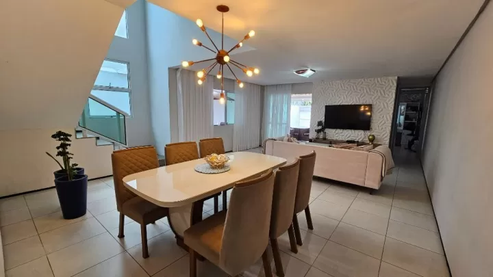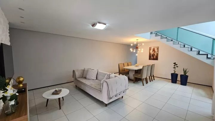 Casa Duplex de Alto Padrão no Bairro Edson Queiroz. Próximo ao Carnaúba da Edilson Brasil Soares Descubra essa espetacular casa de alto padrão com excelente localização e acabamento impecável! * 5 Quartos (4 suítes) Sendo 3 suítes no pavimento superior e 1 suíte no térreo. O quinto quarto é reversível, ideal para um escritório. * Sala ampla e integrada com pé direito alto, proporcionando sofisticação e ventilação natural. * Suíte master com varanda em L totalmente voltada para o nascente, banheiro amplo com duas pias e guarda-roupas embutidos de altíssima qualidade. * Segunda suíte superior também conta com varanda privativa. * Garagem para até 5 carros. * Área de serviço privativa, localizada na parte de trás da casa, com varal voltado para o poente. Essa casa é perfeita para quem busca conforto, sofisticação e um excelente espaço para viver bem. Agende já sua visita!