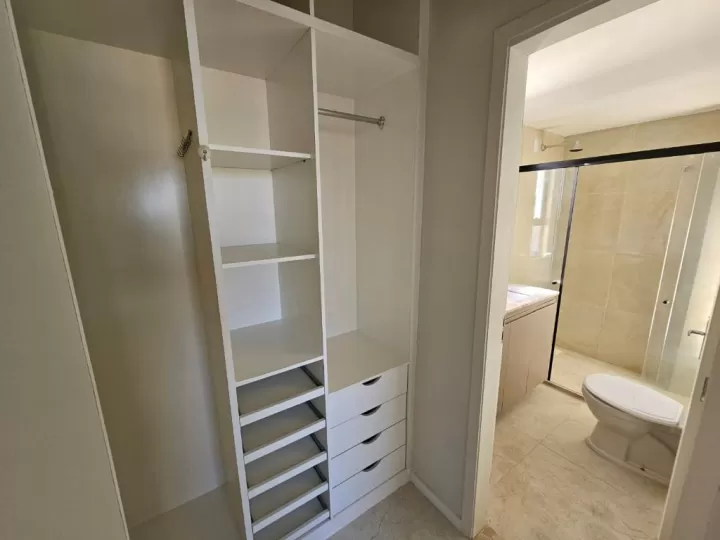 O apartamento conta com 04 suítes amplas, sendo uma master com closet, além de lavabo e dependência completa de funcionária (DCE). São 04 vagas de garagem (2x2), garantindo praticidade e comodidade para toda a família.
