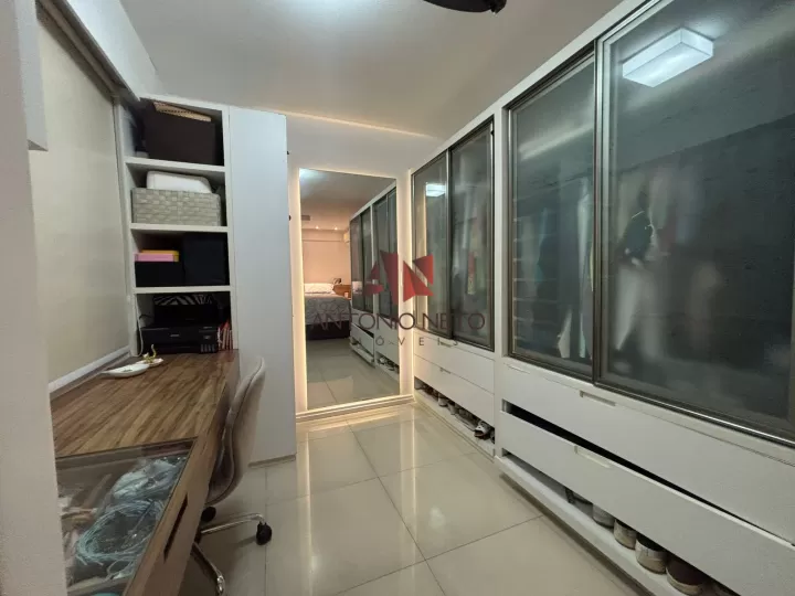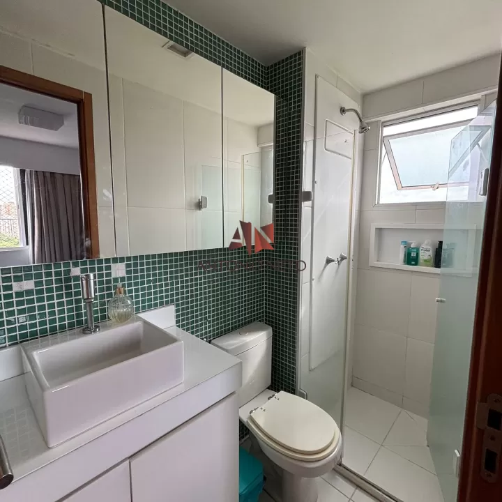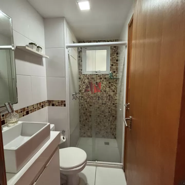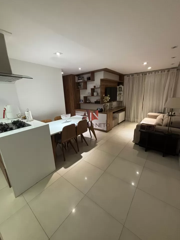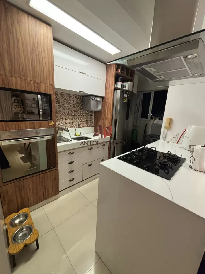 Unidade com 61,53 m² de área útil, todo em piso de Porcelanato, menos áreas molhadas, com 02 quartos, sendo 01 suite com closet, e 01 reversível com móveis planejados, sala de estar com móvel planejado e varanda, sala de jantar, cozinha americana com ilha e armários planejados com paredes revestidas, lavanderia, 02 Banheiros com móveis, boxes e paredes revestidas, 02 Vagas de garagem cobertas, todo com projeto Luminotécnico.