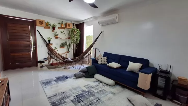 Vivendas do Ramalhete Casa Plana com excelente localização, na Avenida Eusébio de Queiroz! 03 Quartos com suítes; 01 Sala de visitas; 01 Sala de jantar; 01 Varanda (Que utiliza como garagem para 02 carros); 01 Varanda gourmet; 01 Churrasqueira; 01 Forno a lenha; 02 Bancadas de granito; 01 Banheiro social; Área de serviço; Quintal com área de convivência e depósito; 10 Placas solares; 01 Poço profundo; Instalação de máquinas de lavar roupa e louça; Instalação de ar condicionado (Ficarão 5 aparelhos de ar condicionado); Àrea comum do Condomínio: 01 Academia; 01 Quadra de tênis; 02 Quadras de Beach tênis; 01 Campo de futebol; 01 Piscina adulto e infantil; 01 Salão de festas; 01 Churrasqueira; Portão eletrônico; Portaria 24h; 01 Playground; Casa toda no porcelanato. Agende sua visita